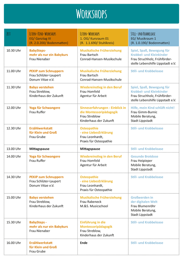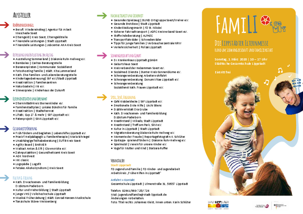 Die Idee zur Elternmesse entstand übrigens in der Steuerungsgruppe zum Netzwerk „Frühe Hilfen Lippstadt“, in dem sich über 100 Fachkräfte in Lippstadt zu familienrelevanten Themen regelmäßig austauschen.