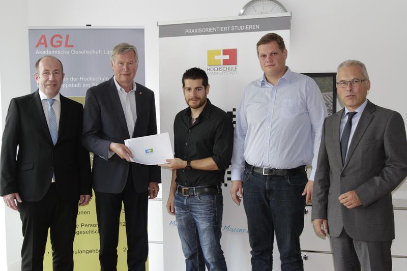 Martin Hinteregger und Michael Hofscheuer sind die ersten Studierenden der HSHL, die sich über ein von der Volksbank Beckum-Lippstadt gestiftetes Gründerstipendium freuen dürfen.
