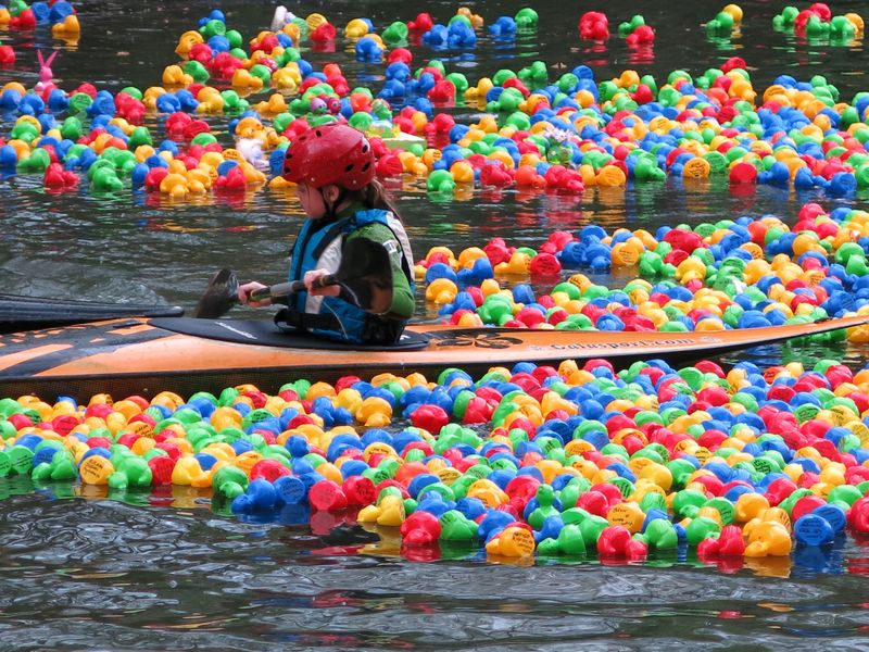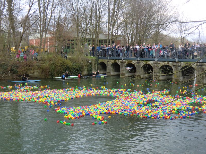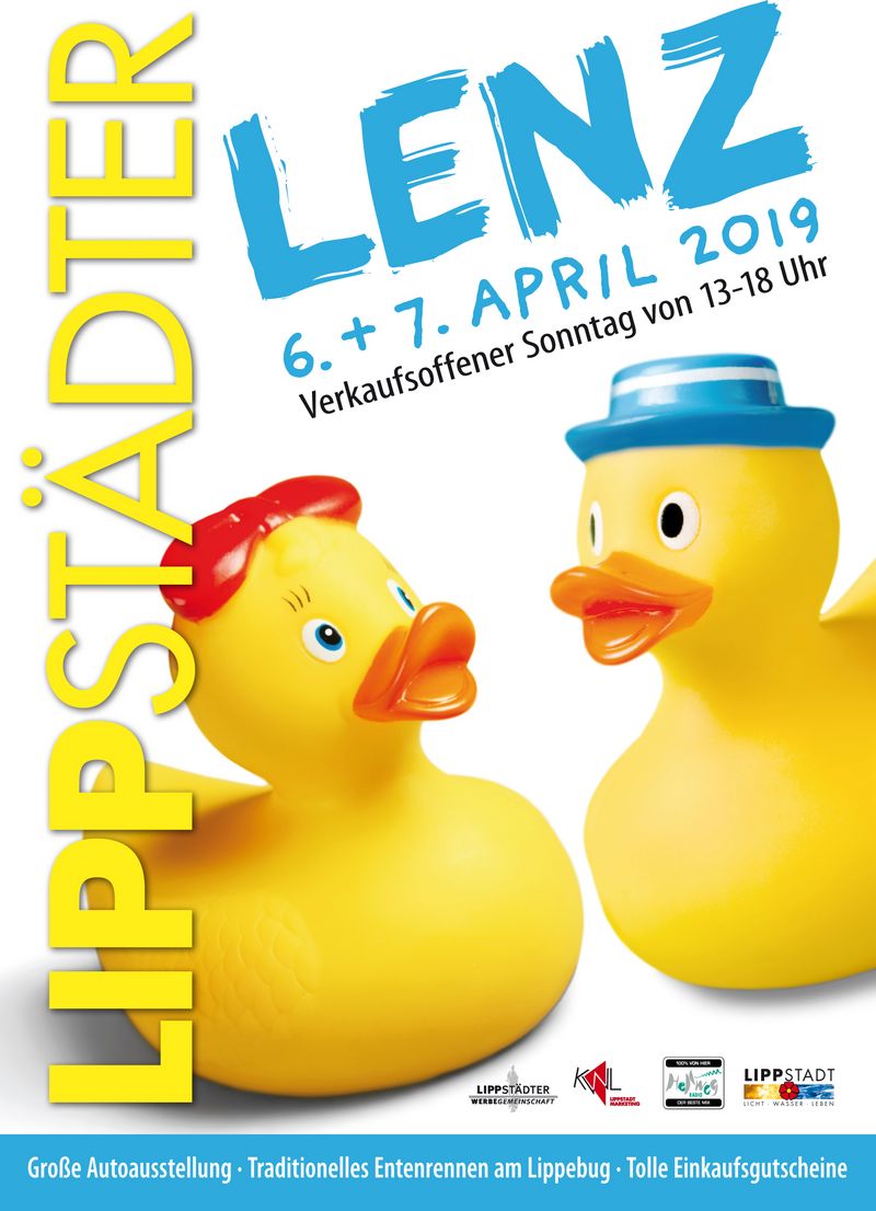 Nervenkitzel, gute Laune und Geselligkeit – wer all dies auf einmal erleben möchte, der schlendert zum Abschluss des Lippstädter Lenz am Sonntag, 7. April zum Lippebug. Denn hier liefern sich einige Tausend Enten ein erbittertes Rennen um die vorderen Plätze. Bei dem Federvieh handelt es sich – Kenner der Szene wissen es – um farbige Plastiktierchen, die auf den Wellen tanzend und von der Strömung getrieben dem Ziel entgegen schaukeln. Die Enten wurden von ihren Besitzern, den Kunden der Lippstädter Werbegemeinschaft angeschlossenen Geschäften, in den Wettbewerb entlassen. Schließlich winken attraktive Preise. Schätzungsweise 12.000 Entchen werden ins Wasser gelassen und von der DLRG, dem THW und dem WSC auf ihrer Reise begleitet. Von dort aus streben sie dem Zielstrich entgegen. Der Startschuss fällt um 18.45 Uhr. Zuvor bringt das Duo „2 Old to die Young“ die Zuschauer und Entenbesitzer musikalisch in Schwung. Daniel Romberg, einer der beiden Musiker des Duos, übernimmt dann auch die Moderation des Entenrennens.