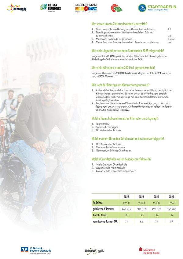Vom 04.05. bis 24.05.2025 hat die Stadt Lippstadt zum vierten Mal am Stadtradeln teilgenommen – und das mit großem Erfolg!