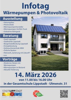 Die Stadt Lippstadt lädt alle interessierten Bürgerinnen und Bürger herzlich zum Wärmepumpen-Infotag ein. Ziel der Veranstaltung ist es, über moderne Heiztechnologien zu informieren, konkrete Orientierung für Sanierungs- und Neubauprojekte zu geben und den Austausch zwischen Fachbetrieben, Verwaltung und Hauseigentümerinnen und Hauseigentümern zu fördern.