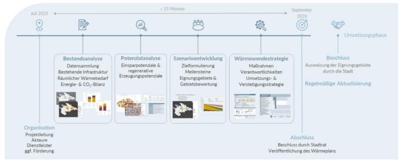 Zwischenergebnisse werden nach Abschluss der einzelnen Arbeitsschritte der Wärmeplanung veröffentlicht – in der Regel also: