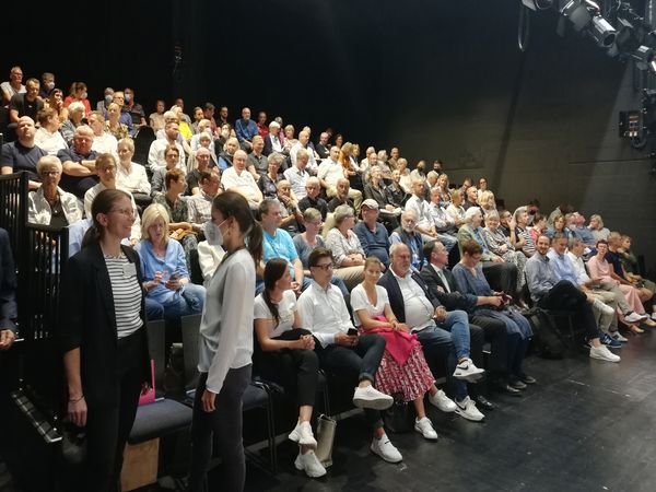 Im Anschluss an die Präsentation und Diskussion in der Studiobühne hatten alle Teilnehmenden im Foyer des Stadttheaters Gelegenheit zu weiteren Gesprächen und den direkten Austausch untereinander und mit den Projektverantwortlichen.