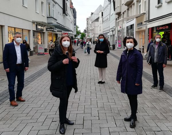 Die Lippstädter Werbegemeinschaft, Vertreterinnen des Büro complan Kommunalberatung (cK – beauftragt, den Anstoß eines Zentrenmanagements zu betreuen), Verantwortliche der Wirtschaftsförderung (WFL), der Stadtverwaltung und Bürgermeister Arne Moritz trafen sich zu einem morgendlichen Quartiersrundgang durch die nördliche Innenstadt. Gemeinsam mit Fachverantwortlichen und Nutzer*innen der Innenstadt wurden unterschiedliche – vor allem leerstehende - Immobilien in den Blick genommen und Status, Perspektiven und Potentiale diskutiert.