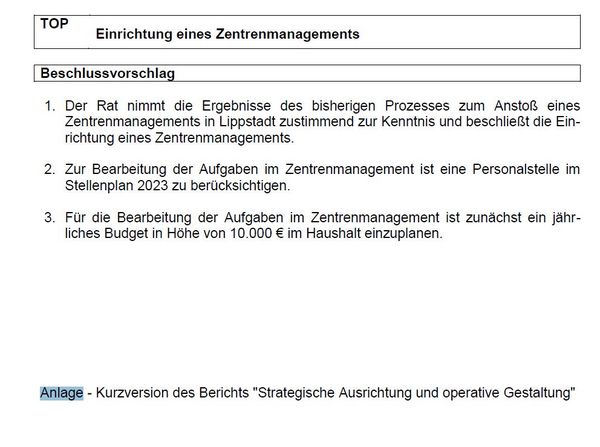 ANSTOß EINES Z ENTRENMANAGEMENTS IN DER L IPPSTÄDTER I NNENSTADT - Zwischenbericht